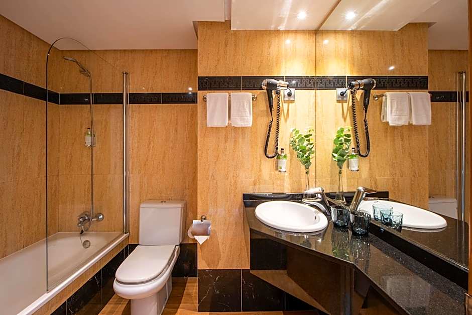 This suite features mini-bar, safe, coffee maker, kettle and a sitting area with a flat-screen TV with satellite channels and sound tower. The bathroom is fully equipped with spa bath, bathrobe, slippers and hairdryer.
